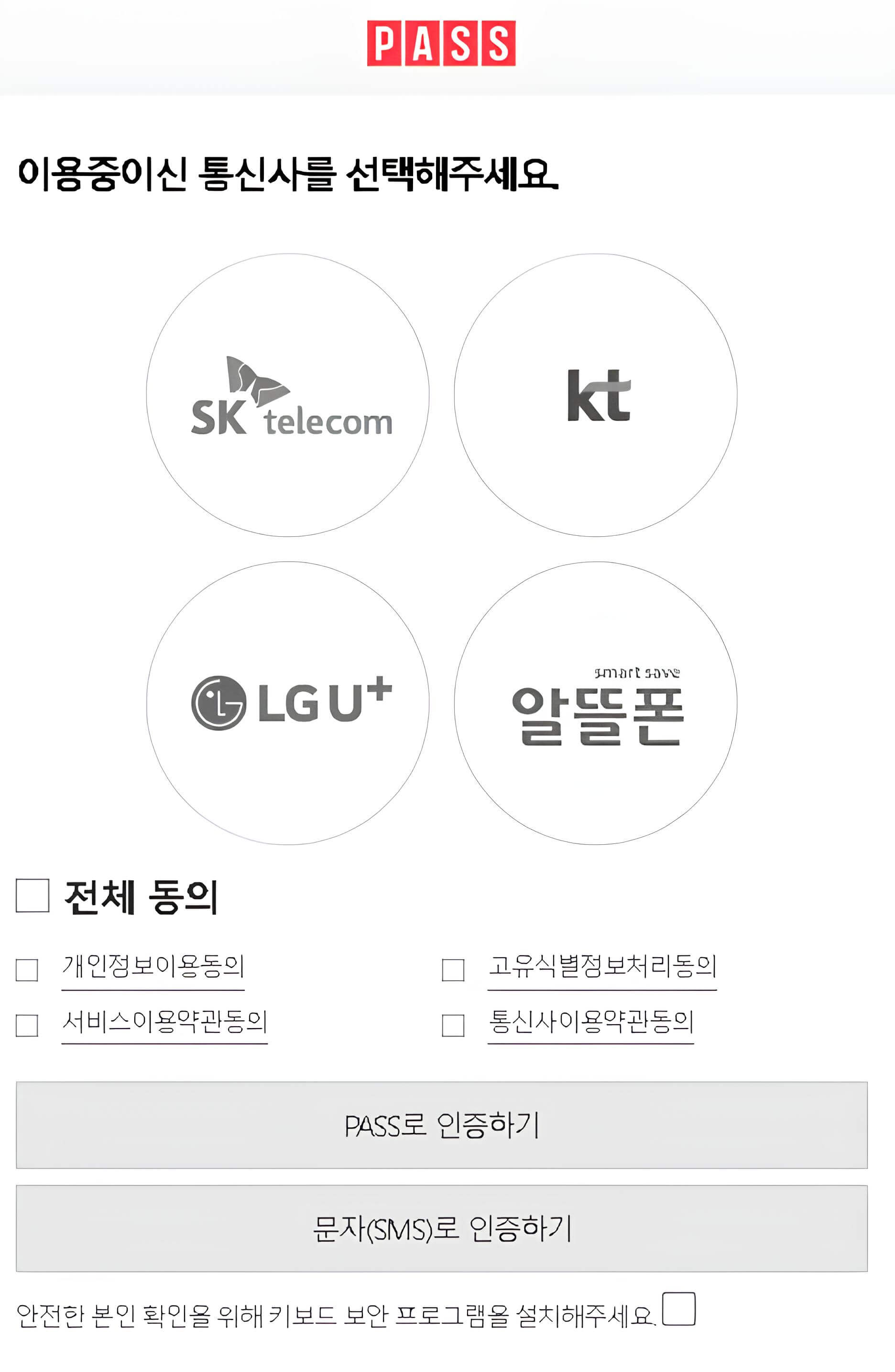 ✅ 개인정보 확인 - pass 또는 문자확인인증