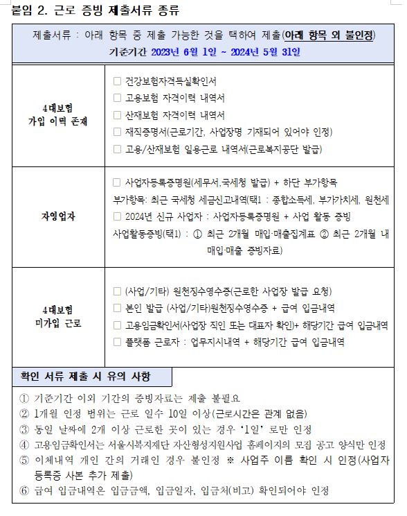 ✅ 근로 증빙서류 - 3개월 이상 근로 확이 가능 (10일 이상 근로 시 1개월 인정)