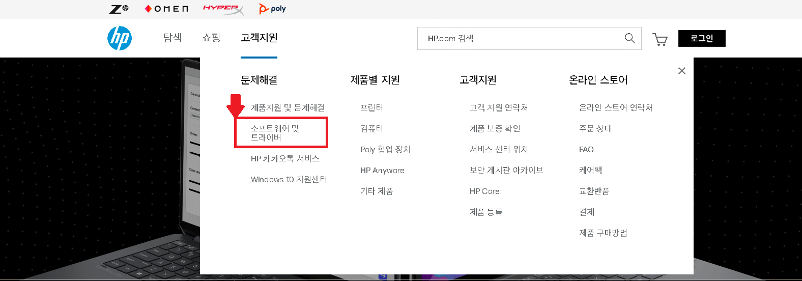 ✅ HP 공식 웹사이트 방문 : 먼저, HP의 공식 지원 페이지로 이동합니다.